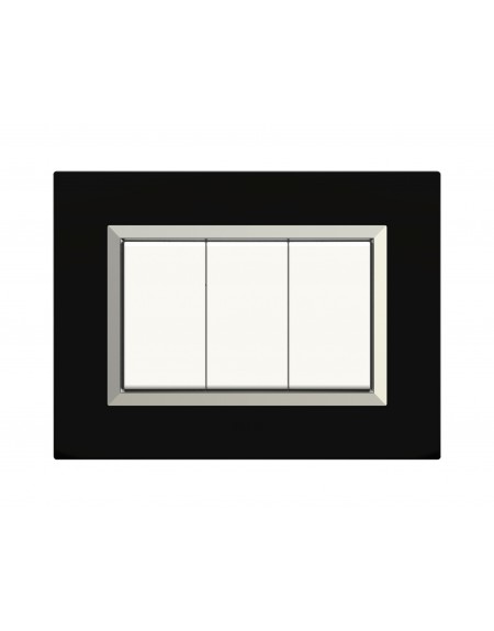 PLAQUES NOVA 45 RECTANGULAIRE NOIR AVEC CADRE CHROME 3 MODULES