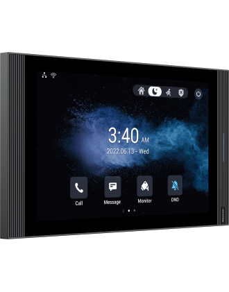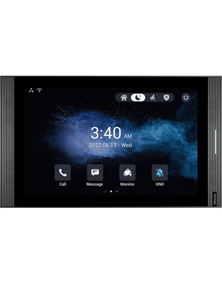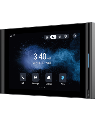 Le moniteur d'intérieur Akuvox S567 10'' fonctionne sur le système d'exploitation Android 12, leader du secteur, et est équipé de la technologie de communication Wi-Fi 6. Les deux micros et les quatre haut-parleurs offrent ensemble une qualité audio supérieure. Avec son design minimaliste, le S567 s'intègre parfaitement dans tout design d'intérieur moderne.
