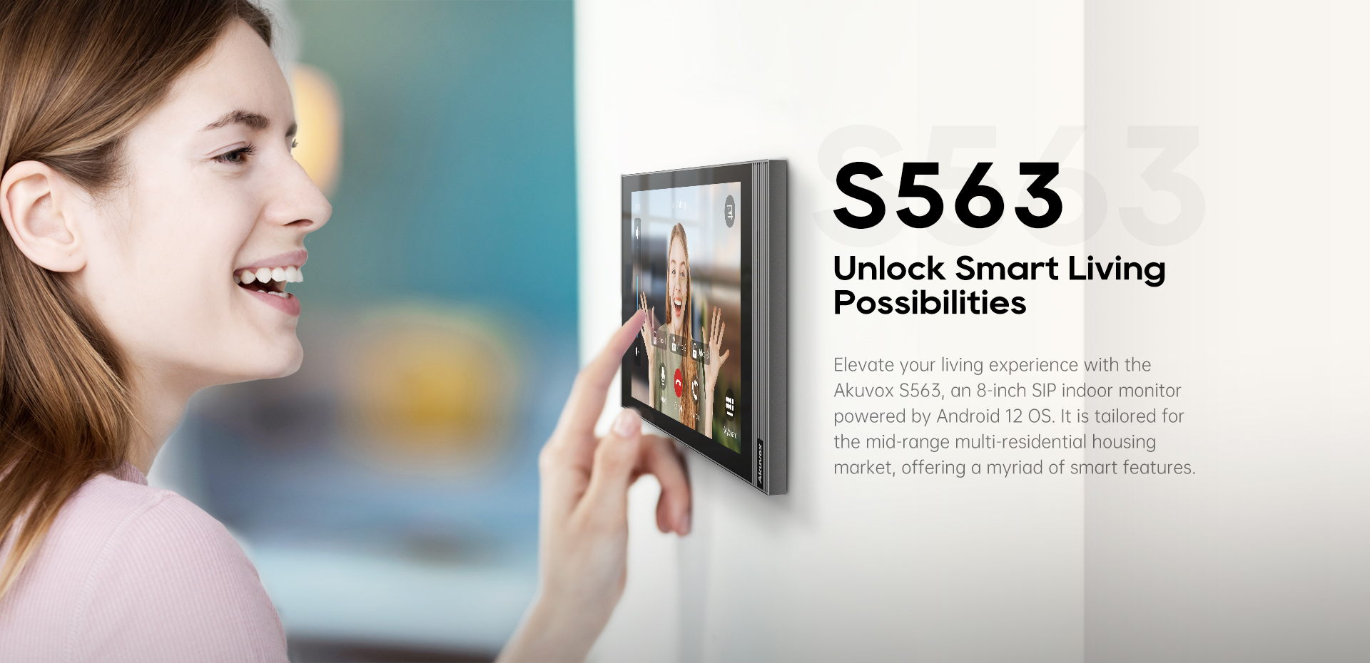 L'Akuvox S563 est un moniteur d'intérieur SIP de 8 pouces qui fonctionne sur le système d'exploitation Android 12. Il dispose d'un haut-parleur exceptionnel et d'un écran tactile haute résolution, garantissant une expérience d'interphone audiovisuel inégalée.