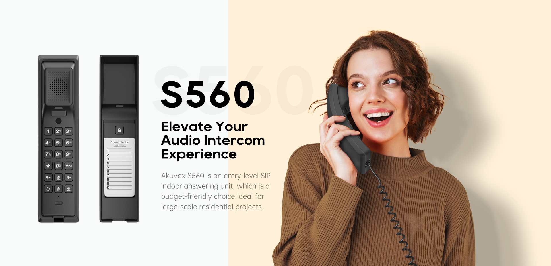 L'Akuvox S560 est un interphone combiné basé sur SIP. Il prend en charge les fonctions d'interphone de base, telles que les appels interphone et le déverrouillage des portes, et peut être installé sur un mur ou placé sur un bureau. Avec un design compact et minimaliste, il constitue un choix idéal pour les petites zones et sert parfaitement d'unité d'extension.