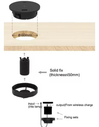 Œillet d'alimentation avec charge sans fil 15W et USB 5VDC 3A.