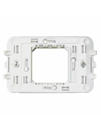 Cadre 1-2 modules pour plastrons rectangulaires S45 avec 1 ou 2 modules centraux - couleur RAL 9010 blanc - pour boîtiers 2503MG, 253CG, 253GB et boîtiers ronds ou carrés avec entraxe de 60 mm ou 56x56 mm - avec vis