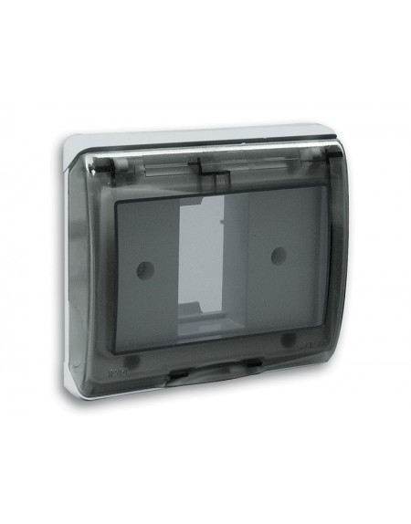PLAQUE ETANCHE ENCASTREE CARREE 1 MODULE S45 COUVERCLE RIGIDE FUME