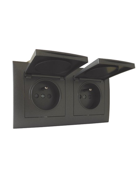 Toute la gamme étanche ( Prises & Interrupteurs) existe en version : 2, 2+2 et 2+2+2 en Noir, en Gris et en Blanc